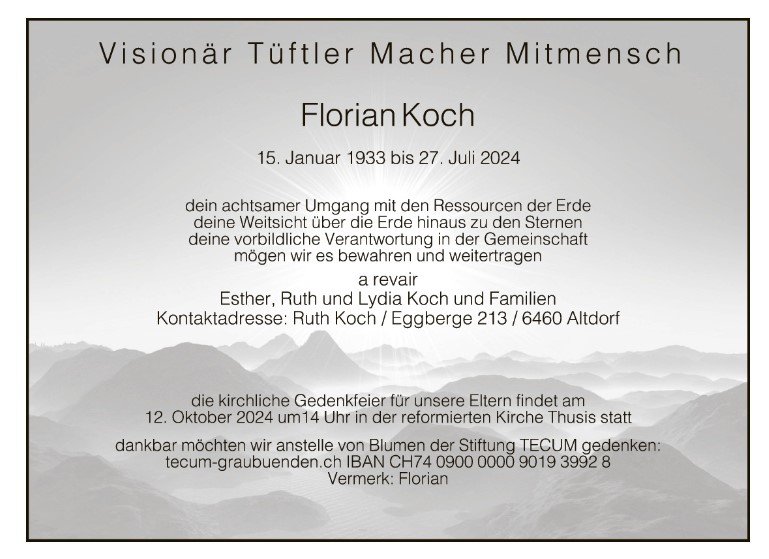 So, wie der Text in der Todesanzeige es aussagt, haben wir (Roland und ich und unsere Kinder) Florian kennen und schätzen gelernt.