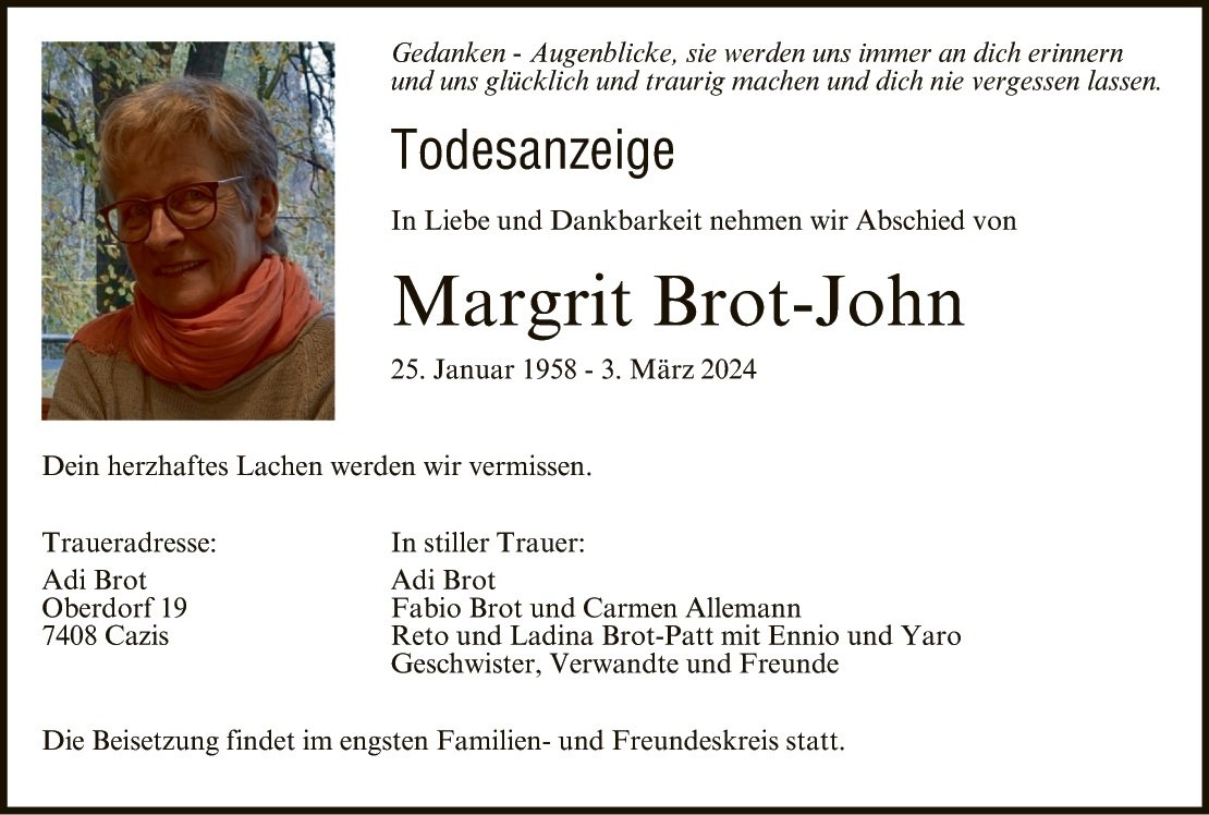 Margrith du warst ein lieber Mensch, alles Liebe