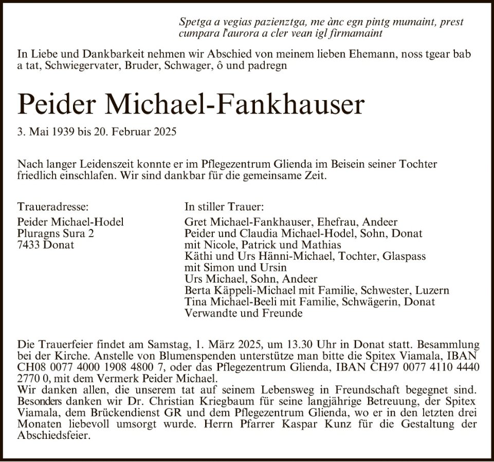 geboren am 3. Mai 1939 gestorben am 20. Februar 2025